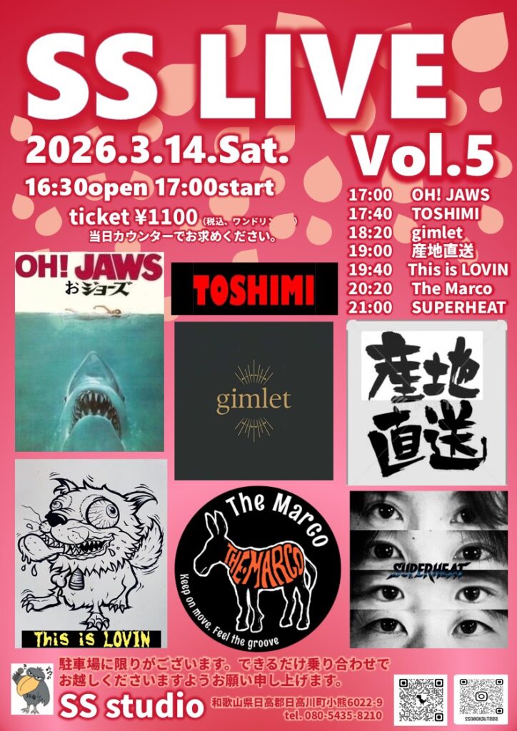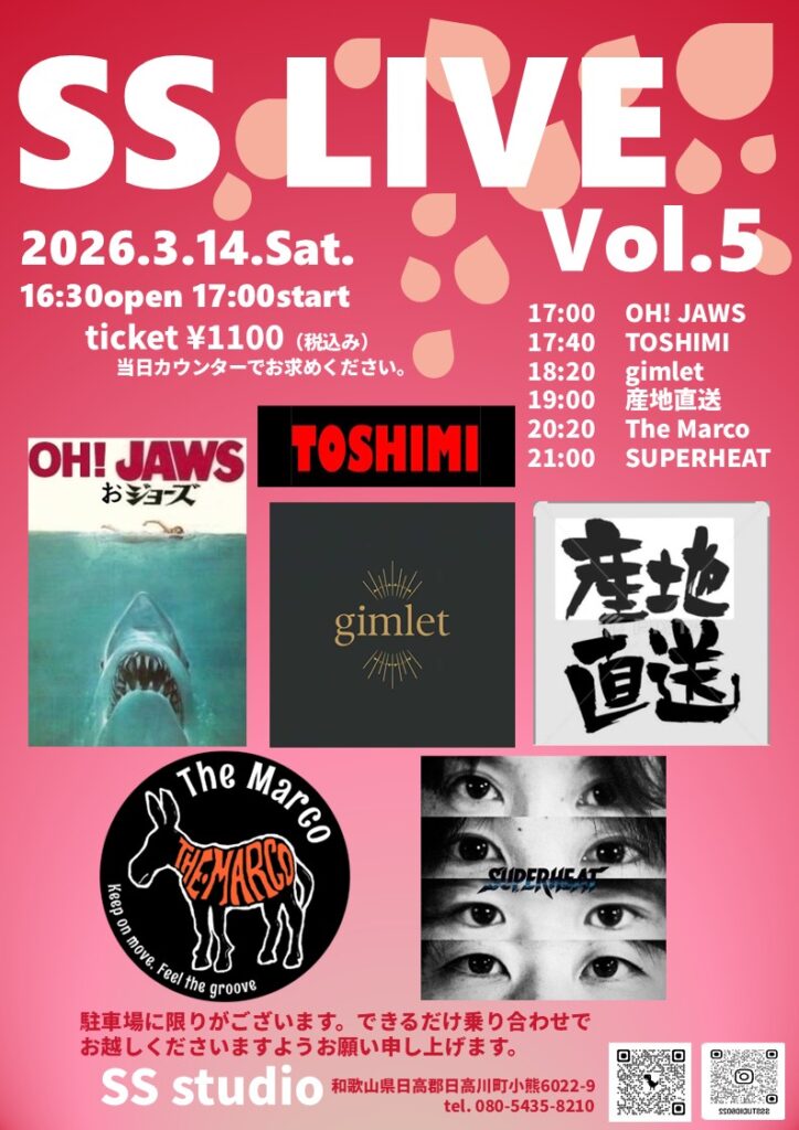 SS LIVE vol.5 3月14日(土)午後5時スタート!